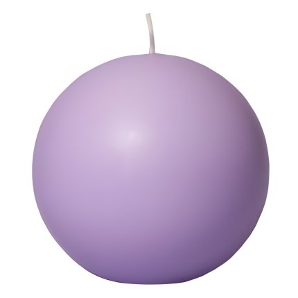 Apaļa svece ar gludu virsmu ceriņu krāsā. Izmērs 8 cm.