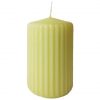 Rievota cilindra formas svece gaiši dzeltenā krāsā. Tā piešķirs mājīgumu un siltumu jebkurai telpai, lieliski iekļaujoties gan modernā, gan klasiskā interjerā. Rievotais dizains piešķir eleganci un vizuālu dinamiku, padarot to par skaistu dekoru. Izmērs (D x A) 70 x 100 mm.