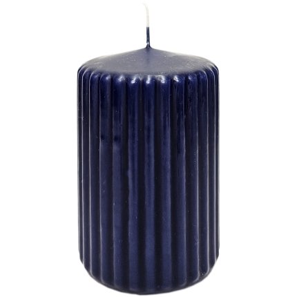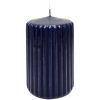 Rievota cilindra formas svece tumši zilā krāsā. Tā piešķirs mājīgumu un siltumu jebkurai telpai, lieliski iekļaujoties gan modernā, gan klasiskā interjerā. Rievotais dizains piešķir eleganci un vizuālu dinamiku, padarot to par skaistu dekoru. Izmērs (D x A) 70 x 100 mm.